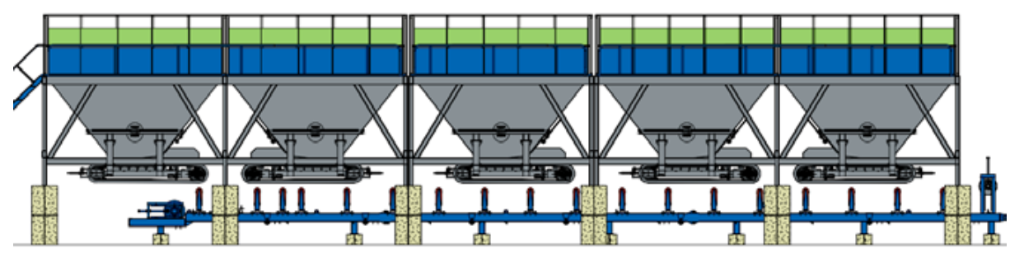 ● 配料斗采用有 2+2+1 或 2+3 等多種模塊化結構,各模塊廠內(nèi)完全組裝,現(xiàn)場直接安裝。